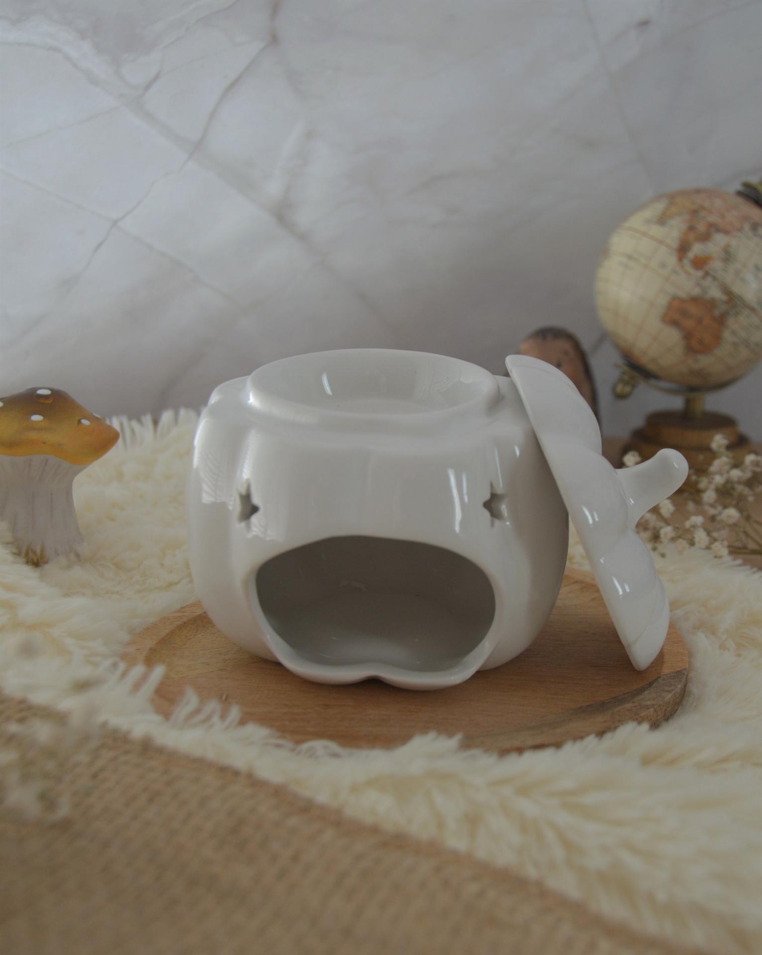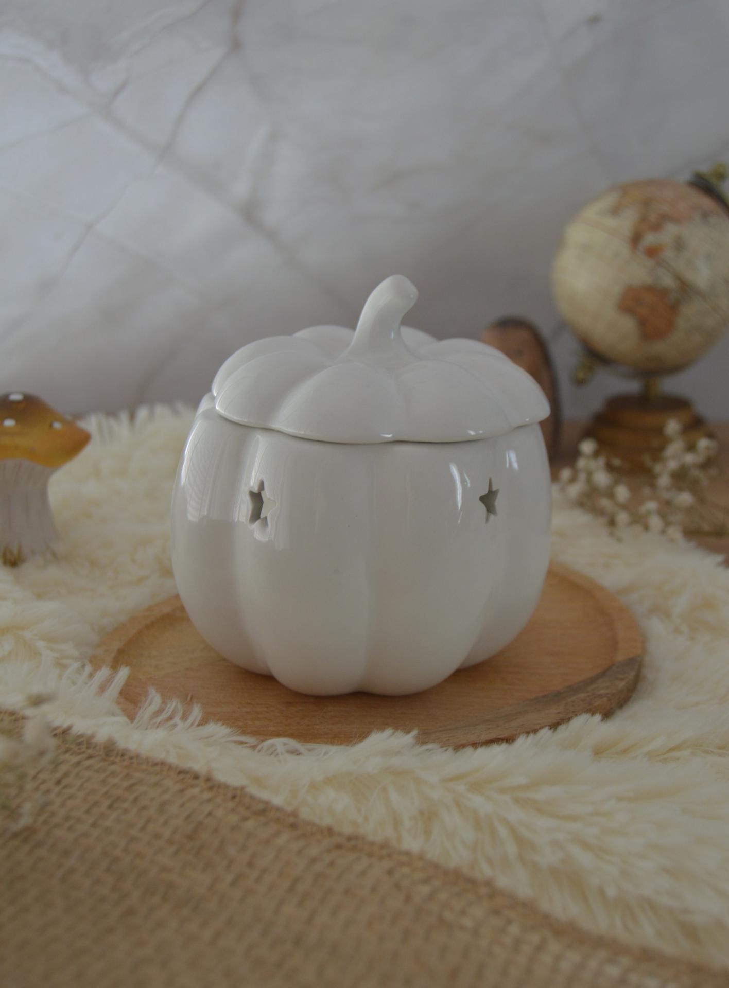 Donnez vie à vos soirées d'automne avec ce magnifique brûle-parfum en forme de citrouille. Idéal pour se plonger dans une ambiance automnale, ce brûle-parfum a été concu en céramique ajourée de petites étolies, laissant ainsi passer la douce lueur des bougies chauffe-plats pour une atmosphère cosy.